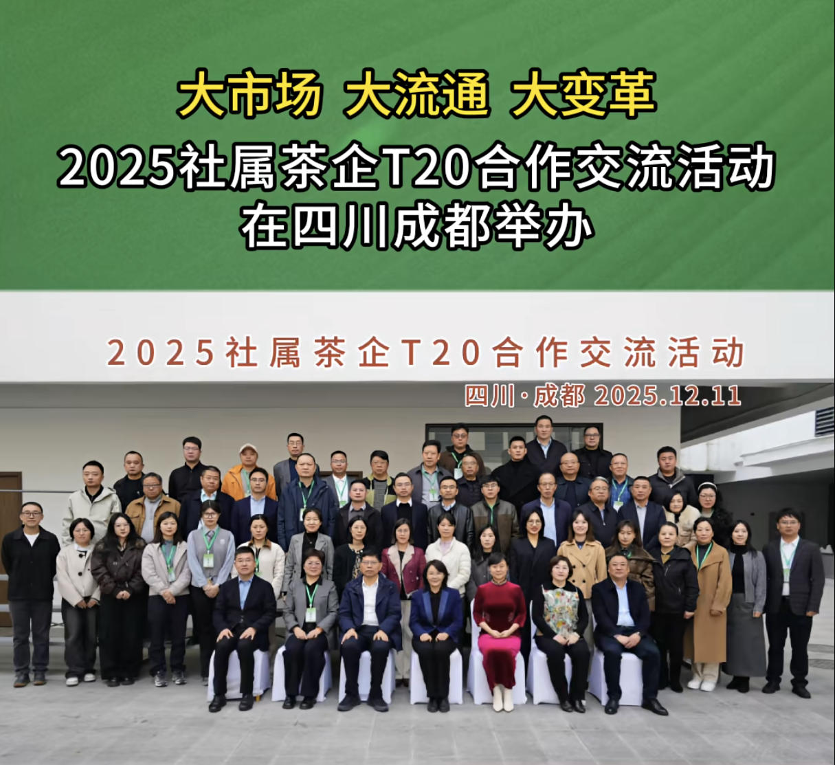 为汇聚供销合作社系统茶企力量,深化行业合作与改革创新,助力乡村振兴与全国统一大市场建设,12月11日—12日,2025社属茶企T20合作交流活动在四川省成都市举行。本次活动由中华合作时报社与中华全国供销合作总社杭州茶叶研究所主办,中华合作时报·茶周刊全媒体、四川蜀茶实业集团有限公司承办,四川省荣县人民政府、成都市茶产业发展协会协办。